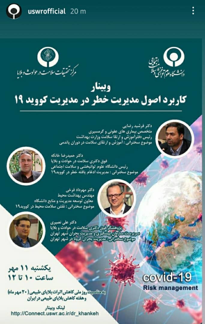 برگزاری وبینار کاربرد اصول مدیریت خطر در مدیریت کووید-19