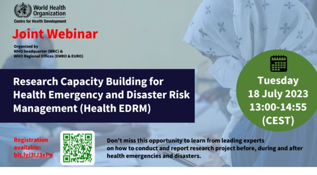 اطلاع رسانی جهت ثبت نام وبینار آموزشی : ظرفیت سازی پژوهش در حوزه ی مدیریت خطر سلامت در حوادث و بلایا